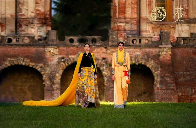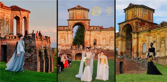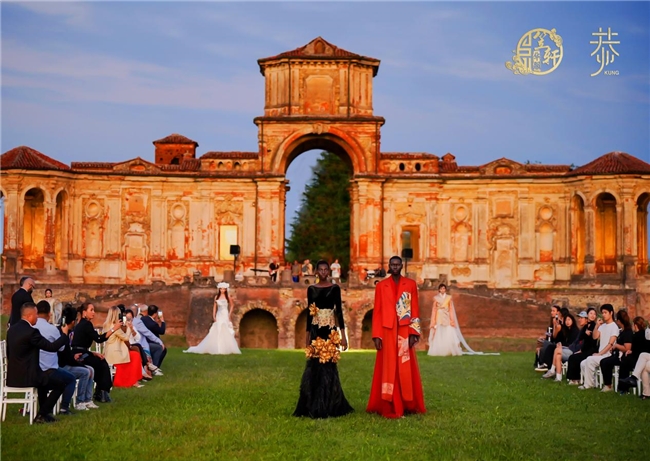 2025年9月,米兰——一场跨越时空的文化对话于意大利“凡尔赛”奇尼奥洛波城堡(Castello di Chignolo Po)盛大启幕。“笠轩华服”与“恭·时尚”联合举办「丝缂千年 无界东方」主题大秀,融合缂丝非遗技艺与当代设计语言,在米兰时装周期间惊艳亮相,并于巴黎同步启动宣传片拍摄,以“秀场+影像”双线叙事推动东方美学深度融入世界时尚语境。