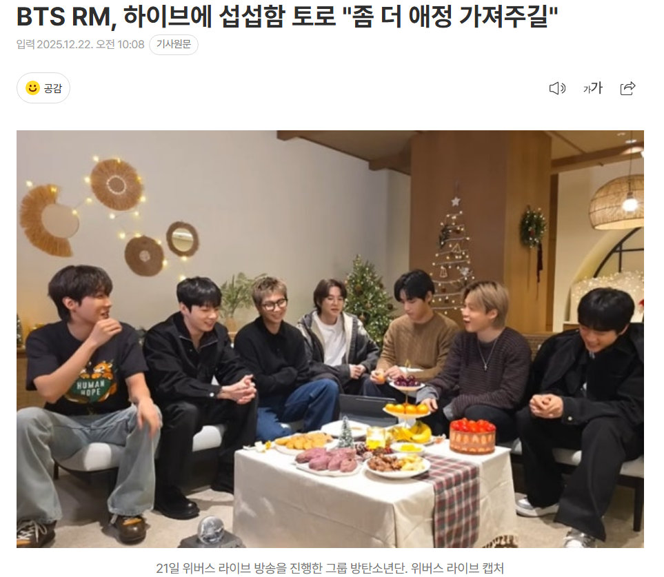 BTS全员完成兵役后首度同框直播!RM公开喊话HYBE:请多给一些关爱