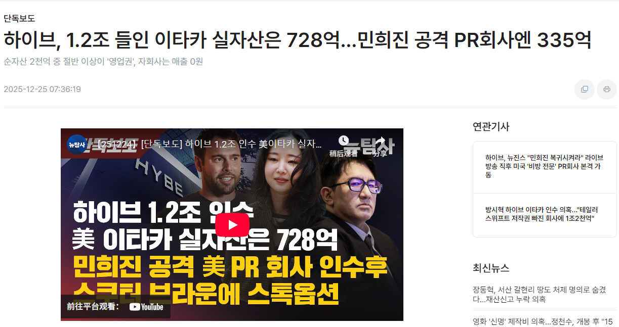 HYBE天价收购案疑云:1.2万亿韩元收购的公司实际资产仅728亿?