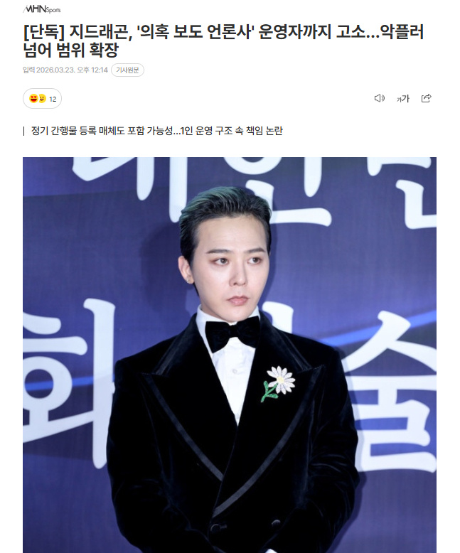 权志龙起诉“刊登疑惑性报道的媒体公司”运营者