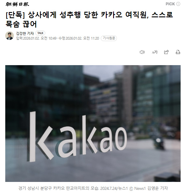 韩媒曝遭受上司性骚扰的Kakao女职员自杀 网友批判相关责任方