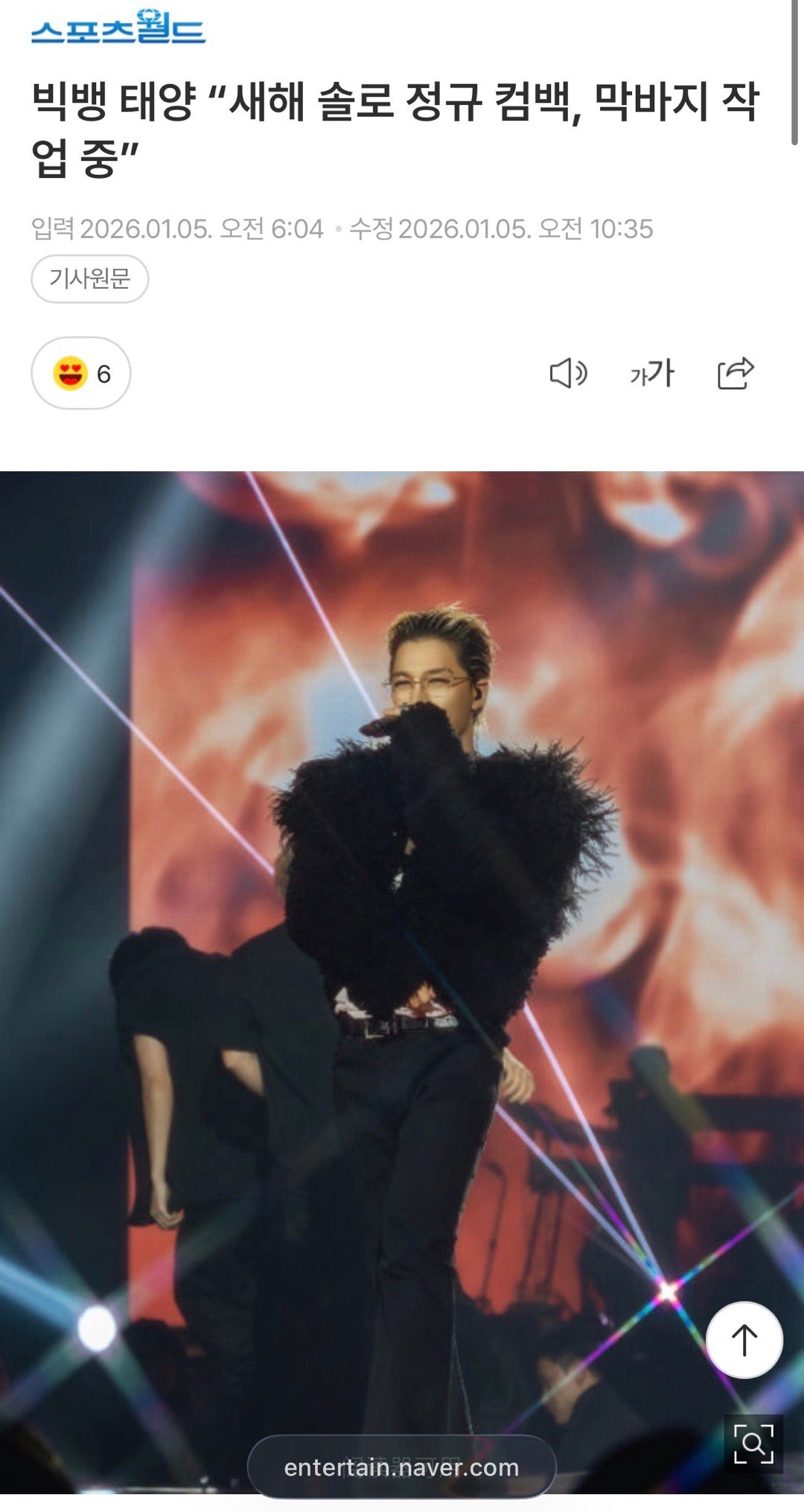 BIGBANG太阳现身大声演唱会 透露“新年SOLO正规专辑”进入最后准备阶段